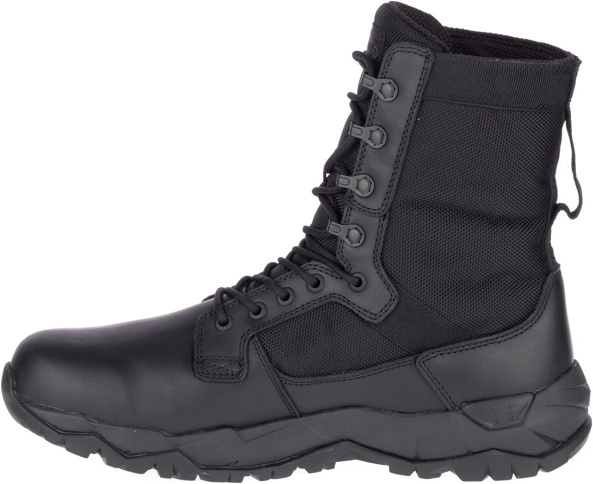 All-day protection for our servicemen and women on patrol! Breathability in the heat and waterproof in the storm. Merrell’s COMFORTBASEâ„¢ footbed cradles your foot and M Selectâ„¢ GRIP rubber outsole offers extra safety when traction is needed.